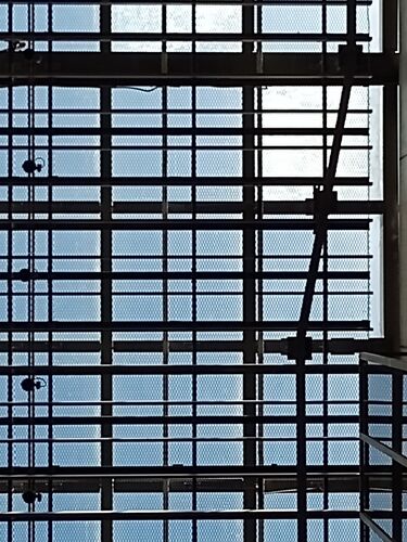跨線橋の高さ 2m の位置にある窓に腕を伸ばして撮ってみた。 スマホカメラは下からスキャンするのかな?(列車は左から右に走ってる) 街灯とか信号機とか、スマホカメラを通してみると点滅してて、ふたつの街灯が同時に光ってるところを撮れない。 赤信号が…